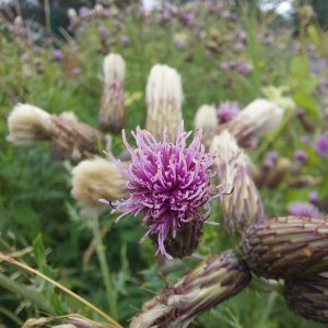 Wieder auf der Hauptstraße, wird mein Blick von einem Schaufenster angezogen. Eine lokale Künstlerin stellt ihre Zeichnungen von der heimischen Flora aus. Ich will uns in den Laden hineinschieben. Ich denke, viel Laufkundschaft bekommt die Künstlerin nicht, denn sie muss erst aufschließen. Geduldig lässt sie uns alles betrachten. Wir kaufen einige Motive in Grußkarten- Format. Ritter Robert informiert sich bei ihr nach der irischen Sprache. Auf den Straßenschildern sehen wir überall eine englische und eine irische bzw. gälische Aufschrift. Die Malerin berichtet, dass nur noch wenige Menschen das Irische tatsächlich sprechen, dass es beinahe ausgestorben ist. Sie geht kurz auf die Geschichte ein und sagt so etwas wie „Willst du eine Kultur unterdrücken, musst du ihr die Sprache nehmen“. Das zuvor etwas graue Gesicht hat inzwischen etwas Farbe und Lebendigkeit bekommen. Oder ist nun auch etwas Emotionalität dabei? Sie interessiert sich auch dafür, wo wir herkommen und vermutet, dass alle Deutschen mehrere Fremdsprachen sprechen. Diese Ansicht korrigieren wir etwas. Zum Abschied sagt sie „Go raibh maith agat“. Das heißt danke. Nicht die einfachste Sprache.