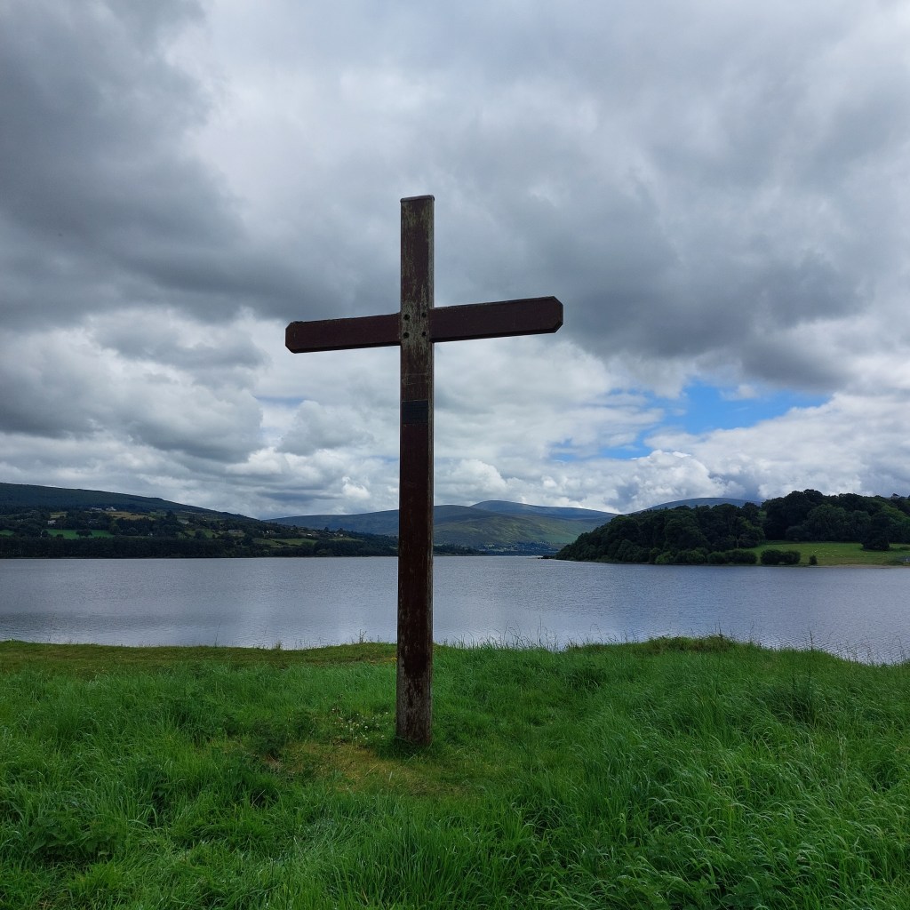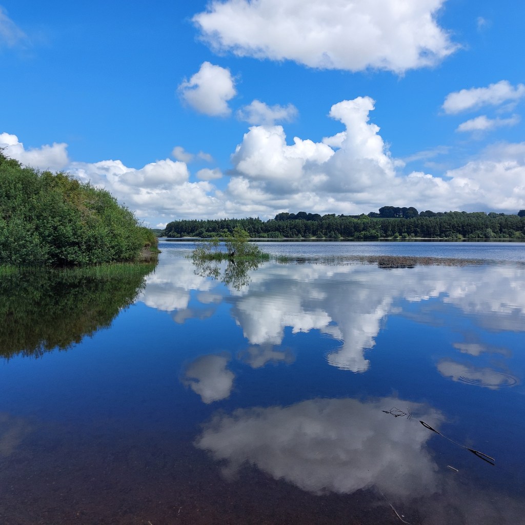 Wir werden nicht enttäuscht. Wir beginnen den Ausflug auf einem Aussichtspunkt oberhalb des Gewässers. Wolkenschatten ziehen über sanfte grüne Hügel, je später der Tag wird, desto mehr ziehen die Wolken ab und wir können in die Höhe und in die Ferne schauen. Wir folgen einem Abschnitt des Blessington Greenway Trail und kommen an einen kleinen Uferstrand, wo wir ein Stündchen verweilen. Wenn ich den Kindern so bei ihrem selbstvergessenen Spiel in der Natur zu sehe, frage ich mich manchmal, ob in der Kindheit die Menschheitsgeschichte noch einmal im Schnelldurchlauf abgespielt wird. Das Suchen nach „Werkzeug“ in der Natur, das Sammeln von allem, was die Natur hergibt zum „Kochen“, das Abgrenzen von Flächen zum Anbauen und das Bauen einer bleibenden „Behausung“. Mit dem Schuleintritt und der vielen Zeit drinnen und im Sitzen geht dieser Bezug für viele Kinder wahrscheinlich mehr und mehr verloren.