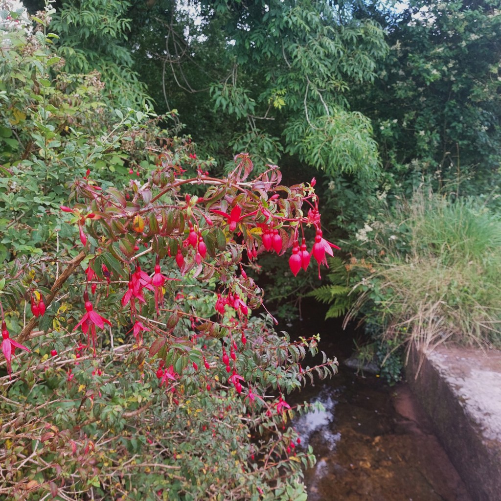 Fuchsien, bekannt aus Omas Balkonkästen, wachsen hier überalll wild