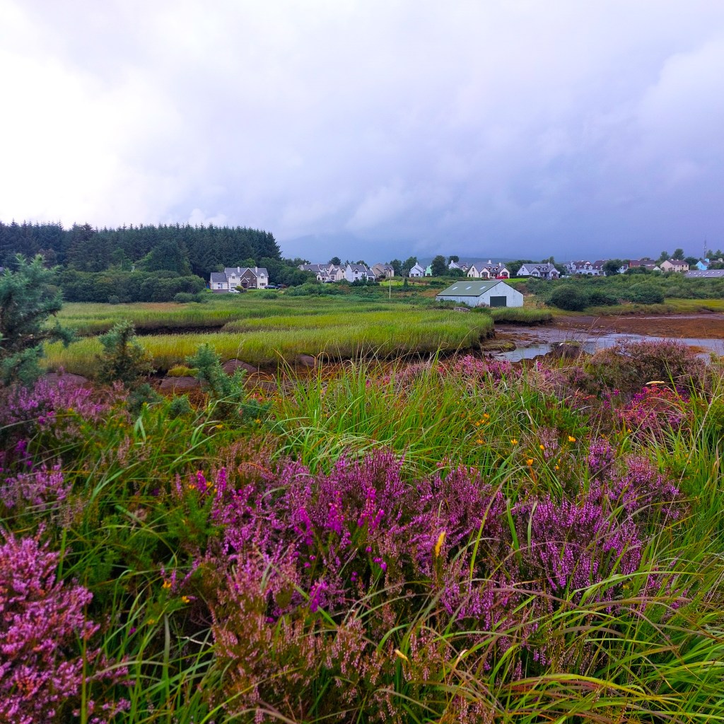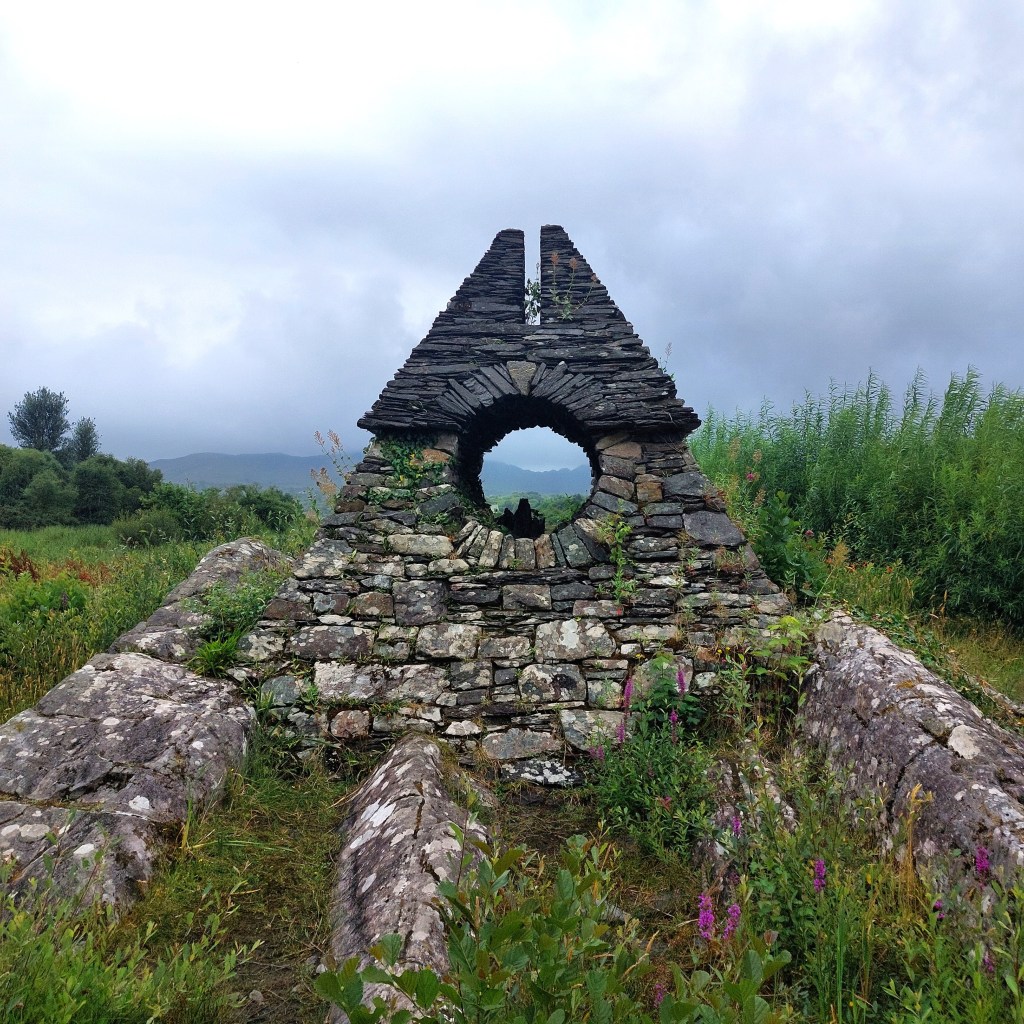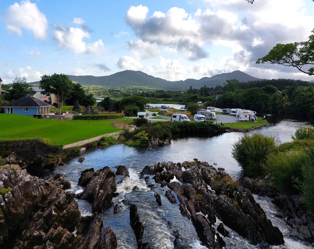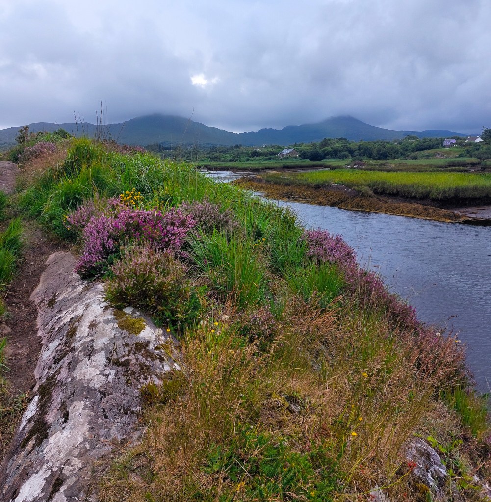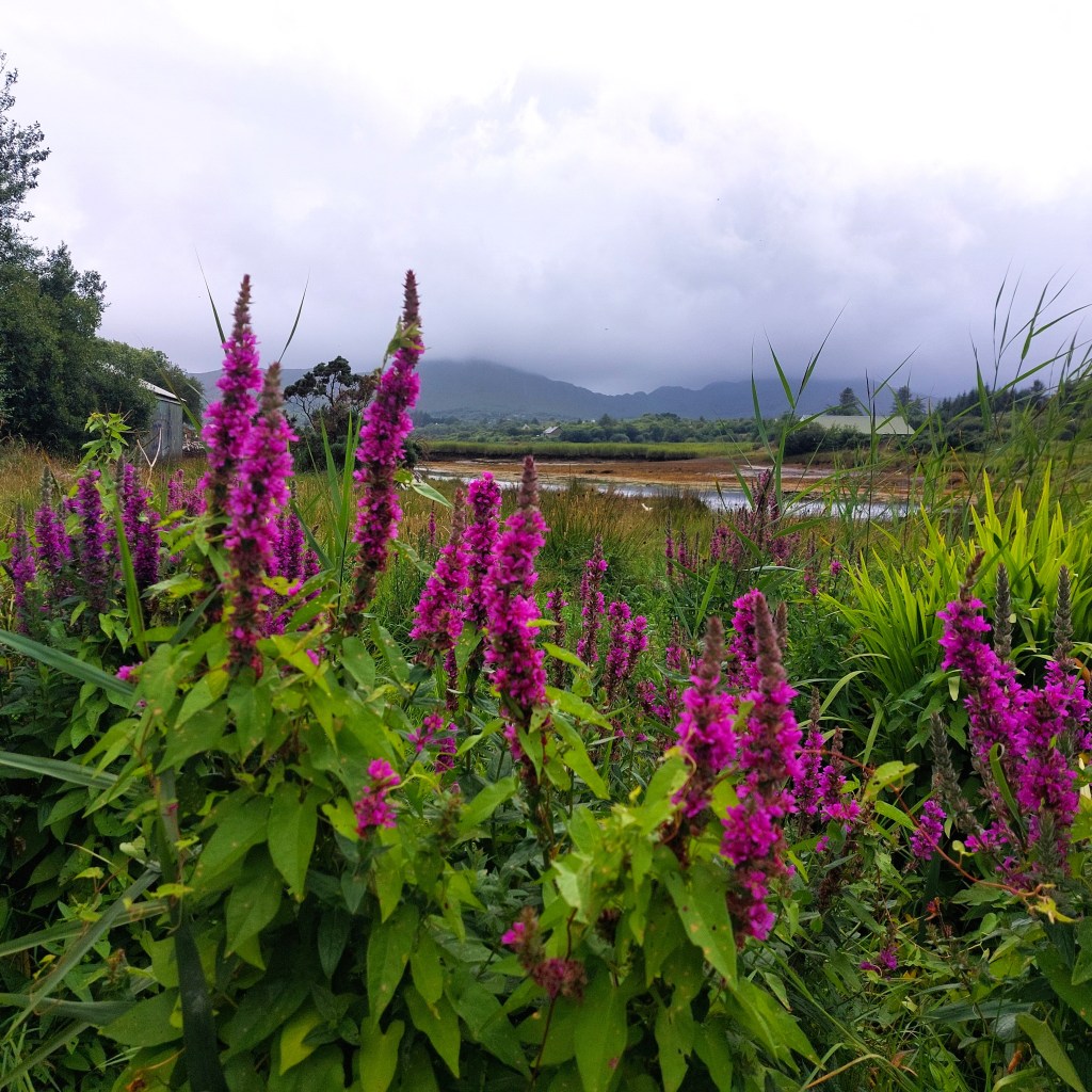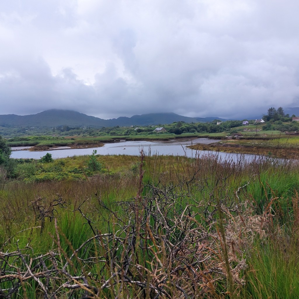 Am Nachmittag verteten wir uns die Beine bei einem Spaziergang um den Ort Sneem. Hier bildet der River Sneem in seinem Mündungsbereich eine sumpfige Landschaft mit viel Schilf, die Schutz und Nahrung bietet für Otter, Seehunde, auch den Dachs und viele wasserliebende Vögel wie Kiebitz, Kormoran und Brachvogel. Auch Zugvögel aus dem Norden überwintern hier.